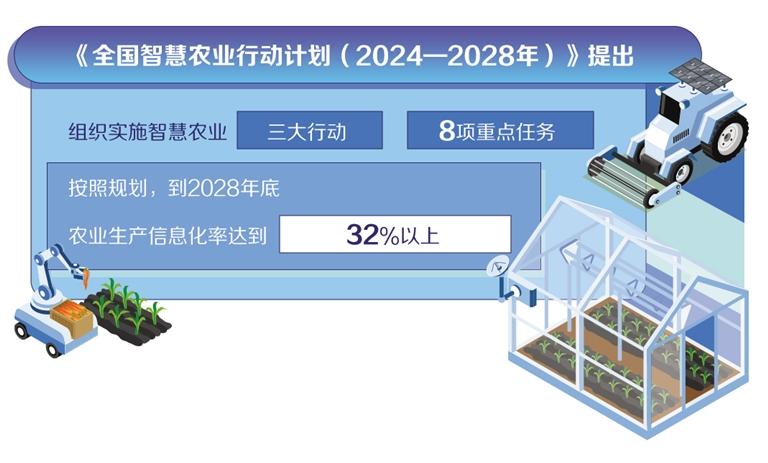 宇树科技近日宣布,将其四足机器人Go2应用于智慧农业领域;全国首台冬枣采摘机器人在陕西大荔投入应用;中国科学院遗传与发育生物学研究所研制出世界首台可自动巡航杂交授粉的智能育种机器人……人工智能应用于农业的最新探索引人关注。国务院日前印发的《关于深入实施“人工智能+”行动的意见》提出,加快农业数智化转型升级。加快人工智能驱动的育种体系创新,支持种植、养殖等农业领域智能应用。加强人工智能在农业生产管理、风险防范等领域应用,帮助农民提升生产经营能力和水平。人工智能在农业领域的应用进展如何?怎样推动农业数智化转型升级?记者采访了有关经营主体和专家。在安徽农垦集团数字农业管理平台展示中心的大屏幕上,人们可以看到位于安徽怀远县龙亢农场万亩稻田里2架巡田无人机自主飞行作业的场景。通过低空多光谱无人机传回作物长势情况,结合地面AR鹰眼视频监控,AI可自动识别草情、病虫害。工作人员说,龙亢农场去年引进智慧糯稻产业集群项目,虫情测报站、孢子捕捉仪、杀虫灯等采集数据,平台进行AI分析、智能识别害虫后,将指令发布给无人机。农技人员经现场确认后,用无人机“精准点杀”,可节约农药成本10%至20%。智慧农业正快速发展。目前,我国一般性环境类农业传感器已基本实现国产,北斗导航技术在耕种、管理、收获等环节应用,农业遥感技术广泛应用于农情监测、估产,农业无人机技术达到国际先进水平并应用于信息采集和病虫害防控,精准施肥、智能灌溉、精准施药等技术广泛应用于规模化生产。越来越多经营主体依托人工智能赋能农业,实现生产过程的智能感知、智能决策和智能控制。农业农村部农村经济研究中心可持续发展研究室主任刘景景说,目前,人工智能技术在农业领域的应用成效主要体现在两方面:一是实现农业重复性工作的自动化。传统农药喷洒、收割、播种等依赖人力的任务,可通过AI、机器人或自动化技术完成。二是基于物联网数据实现降本增效。通过传感器采集气候、土壤、病虫害等数据,人工智能可辅助农民精准决策,优化施肥、灌溉和作物管理。南京农业大学副校长朱艳表示,去年印发的《全国智慧农业行动计划(2024—2028年)》提出组织实施智慧农业三大行动、8项重点任务。这无疑为智慧农业的推广注入强大动力,以政策拉动、典型带动、技术驱动、服务推动,促进人工智能在农业领域的全面发展。通过“数据+模型+场景”的核心底座,未来农场将成为由传感器、物联网、大模型、机器人等元素组成的“全能智能体”,赋能农业智慧化、绿色化和规模化,支撑保障国家粮食安全和形成农业新质生产力。《全国智慧农业行动计划(2024—2028年)》提出,在公共服务能力建设上,加快打造国家农业农村大数据平台、农业农村用地“一张图”和基础模型算法等公共服务产品;在产业布局上,着力推动主要作物大面积单产提升,培育一批智慧农场、智慧牧场、智慧渔场,推进全产业链数字化改造;在示范带动上,支持浙江先行先试,探索推广“伏羲农场”等未来应用场景。“人工智能与农业的结合,标志着传统农业领域关键环节与人工智能技术的融合与优化。”刘景景表示,这一过程本质上是将农民长期积累的经验知识转化为具有可操作性的模型,使那些经验不足的从业者也能从中受益。人工智能以其强大的数据感知、分析决策与自主执行能力,在推动农业现代化进程中展现出巨大潜力。尽管人工智能技术在农业领域潜力巨大,但仍面临一些现实挑战。刘景景认为,在数据获取与共享方面,存在农业数据分散、标准不一,数据获取和共享机制不完善的问题,制约了模型训练和应用;在成本与基础设施方面,技术应用成本仍然较高,农村地区网络和计算资源不足,限制了技术推广;在农民接受度方面,部分农民对人工智能技术缺乏了解,接受度较低,需要加强培训和推广;在伦理与隐私方面,人工智能技术应用涉及数据隐私和算法公平性等问题,需制定相关规范。记者了解到,人工智能在农业领域的研发应用推广比工业领域更难。分析原因,一是农业是非标准化环境,对象是生命体,相关研发需要农学、光学、传感、机械、算法等领域专家协同。二是农业比较效益一般低于二三产业,农民和新型农业经营主体要计算投入产出账,他们的要求是“技术不一定要多高大上,但成本要尽量低”。三是由于农业生产环境复杂多变,有的产品说起来丰满、用起来骨感,实际使用效果不尽如人意。这些因素制约了人工智能在农业领域的进一步发展。按照规划,到2028年底,信息技术助力粮油作物和重要农产品节本增产增效的作用全面显现,先行先试地区农业全产业链数字化改造基本实现,全域推进智慧农业建设的机制路径基本成熟,农业生产信息化率达到32%以上。农业农村部信息中心主任王小兵认为,重点要抓数据,解决好发展智慧农业最薄弱的环节。以应用场景为牵引,加快构建空天地一体化数据资源采集体系,为模型训练提供海量的“数据饲料”。把农业物联网作为数据采集最重要的渠道之一,建立健全农业全产业链数据资源体系,确保各个关键节点的智能决策都有数据支撑。推进公共数据资源的开放共享和开发利用,推动形成各类数据汇聚、共享、利用的机制,让农民成为数据采集的主体,让数据采集成