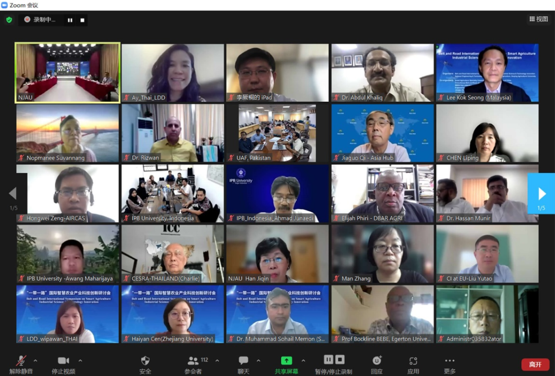 6月26日,“一带一路”国际智慧农业产业科技创新研讨会在南农举行。会议由南京农业大学牵头的“一带一路”国际智慧农业产业科技创新院(以下简称创新院)和国家信息农业工程技术中心主办,南京神农智慧农业研究院、中国作物学会智慧农业专业委员会、科技部中国-肯尼亚作物分子生物学“一带一路”联合实验室、农业农村部农作物系统分析与决策重点实验室等联合承办。会议采用线上线下相结合的形式举行,在南京农业大学设主会场,在巴基斯坦费萨尔巴德农业大学和印尼茂物农业大学等创新院国际参与单位设立分会场。巴基斯坦费萨尔巴德农业大学校长Iqrar Ahmad Khan教授、巴基斯坦信德农业大学校长Fateh Muhammad Marri教授、肯尼亚丘卡大学代理校长Dorcas Isutsa教授、肯尼亚埃格顿大学副校长Bockline Omedo Bebe教授等出席会议,来自中国、巴基斯坦、印度尼西亚、泰国、赞比亚、肯尼亚等15个国家的高校与企业代表近130人参加了会议。